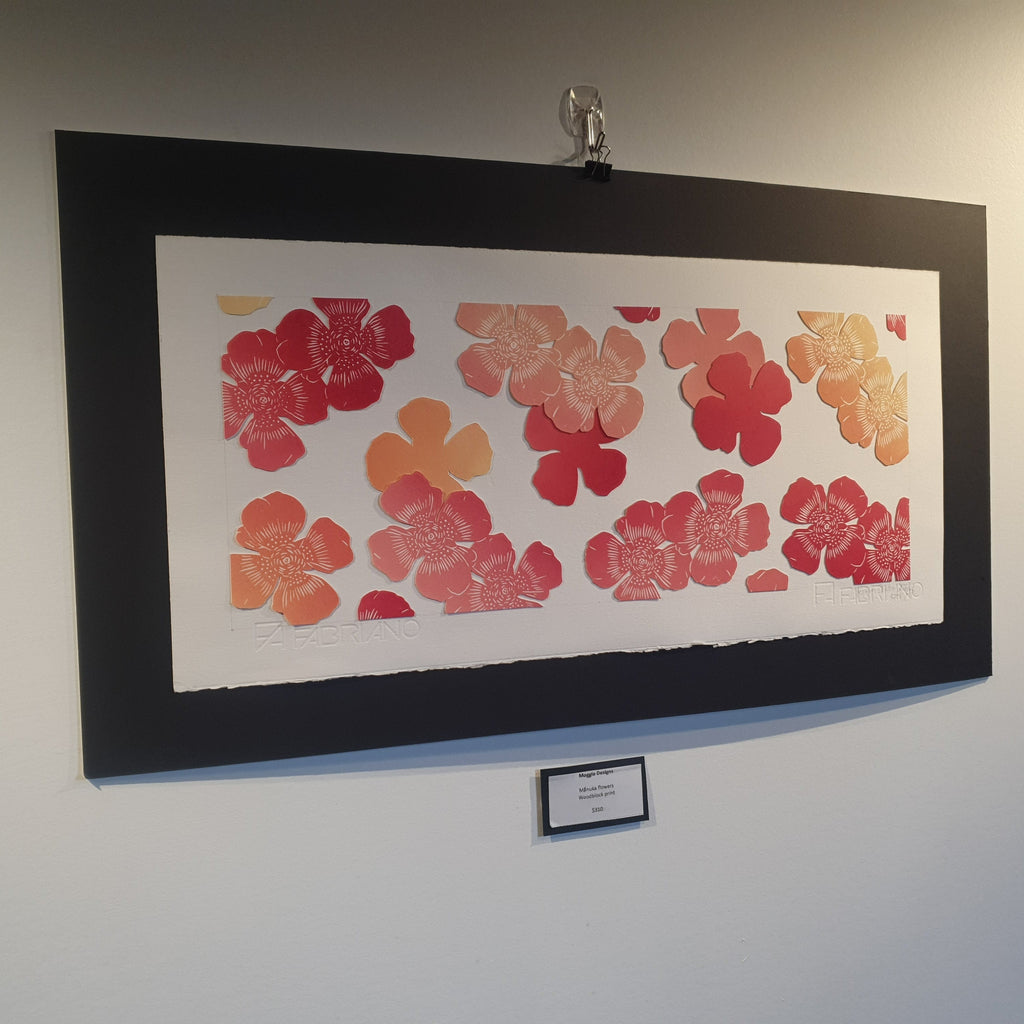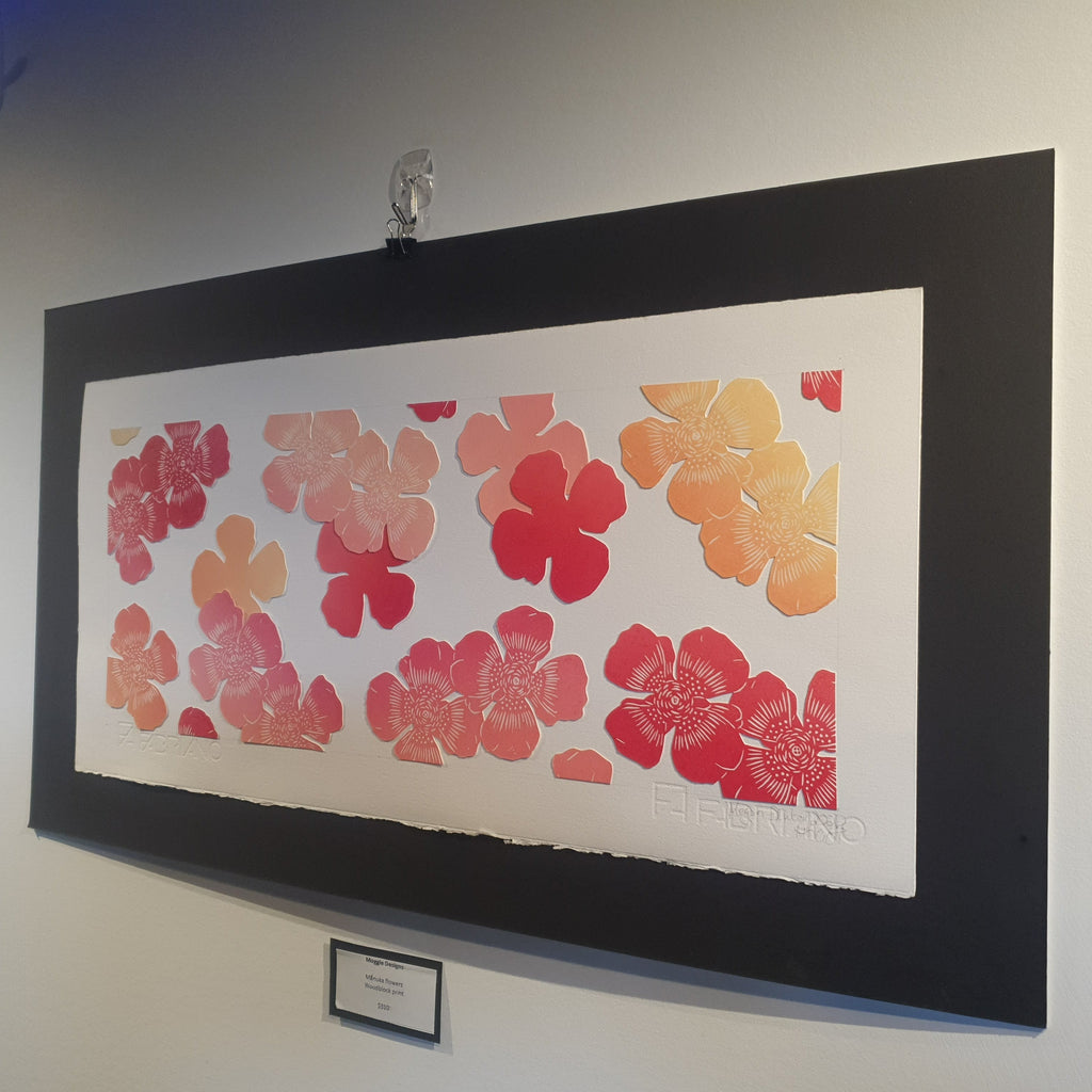 Mānuka flowers woodblock print, created by Moggie Designs in Kaiapoi